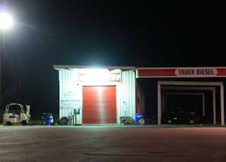 We were relieved when we saw a billboard advertising a nearby truck stop. Maybe they would also have auto tires. Or maybe they would have a better patch kit and an air hose that wasn't cut.